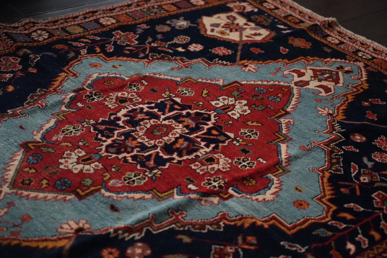 長い時を経て、大切に受け継がれたラグのため、経年による