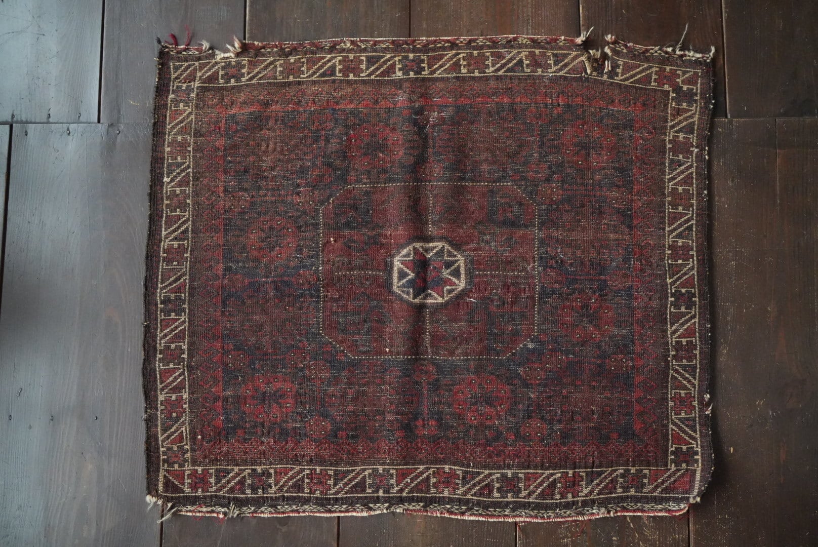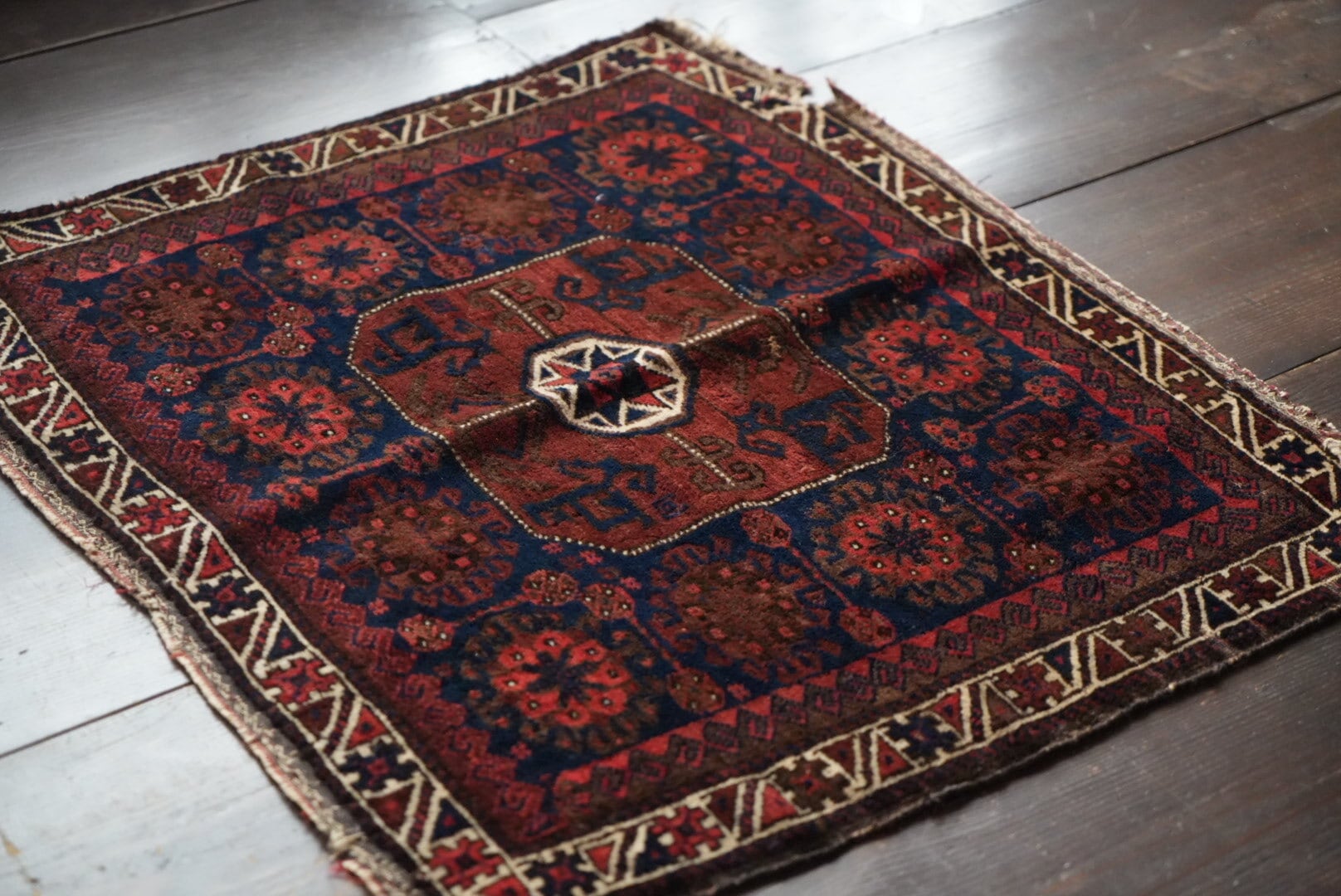 【AA173】[ミニサイズ]バルーチの赤と紺のコントラストが美しいバックフェイスラグ|アンティークペルシャ