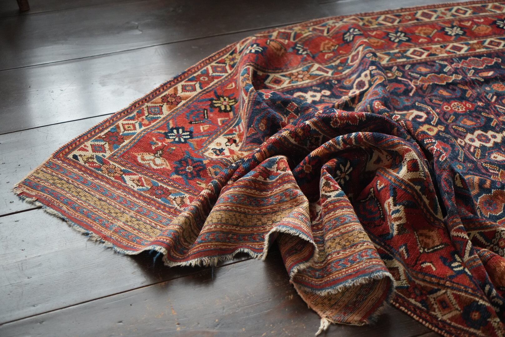 長い時を経て、大切に受け継がれたラグのため、経年による