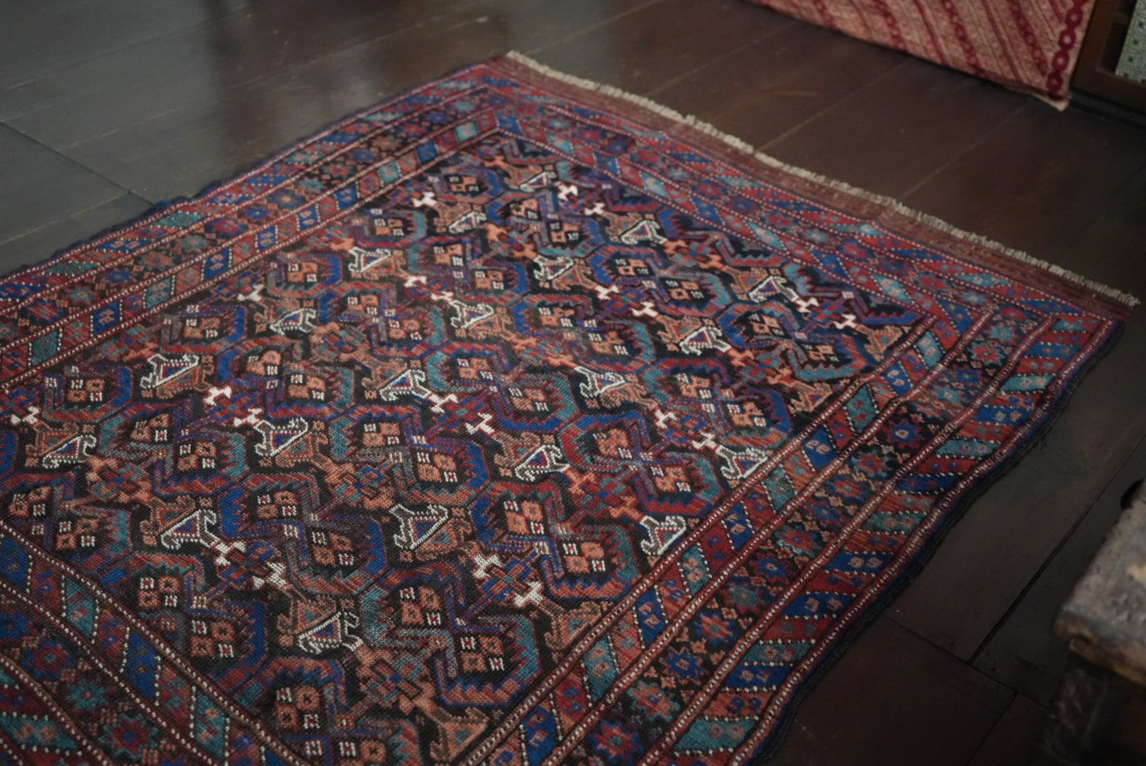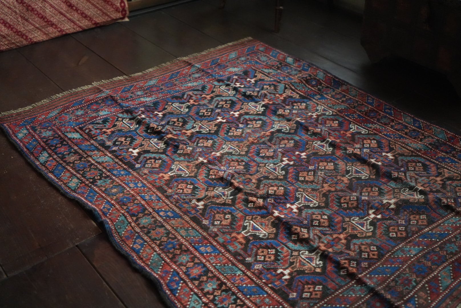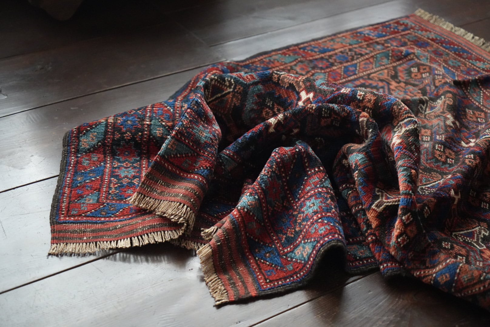 長い時を経て、大切に受け継がれたラグのため、経年による