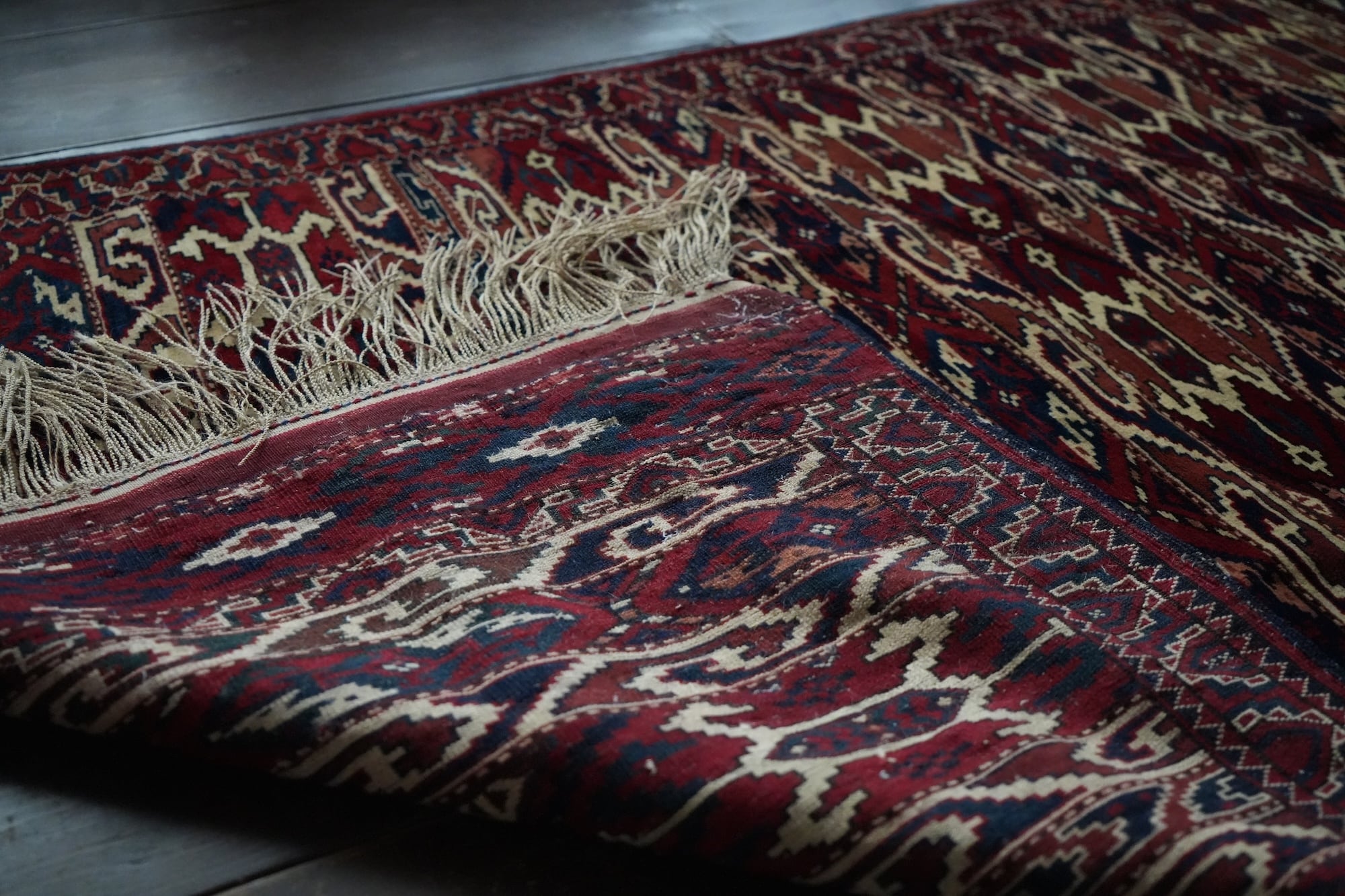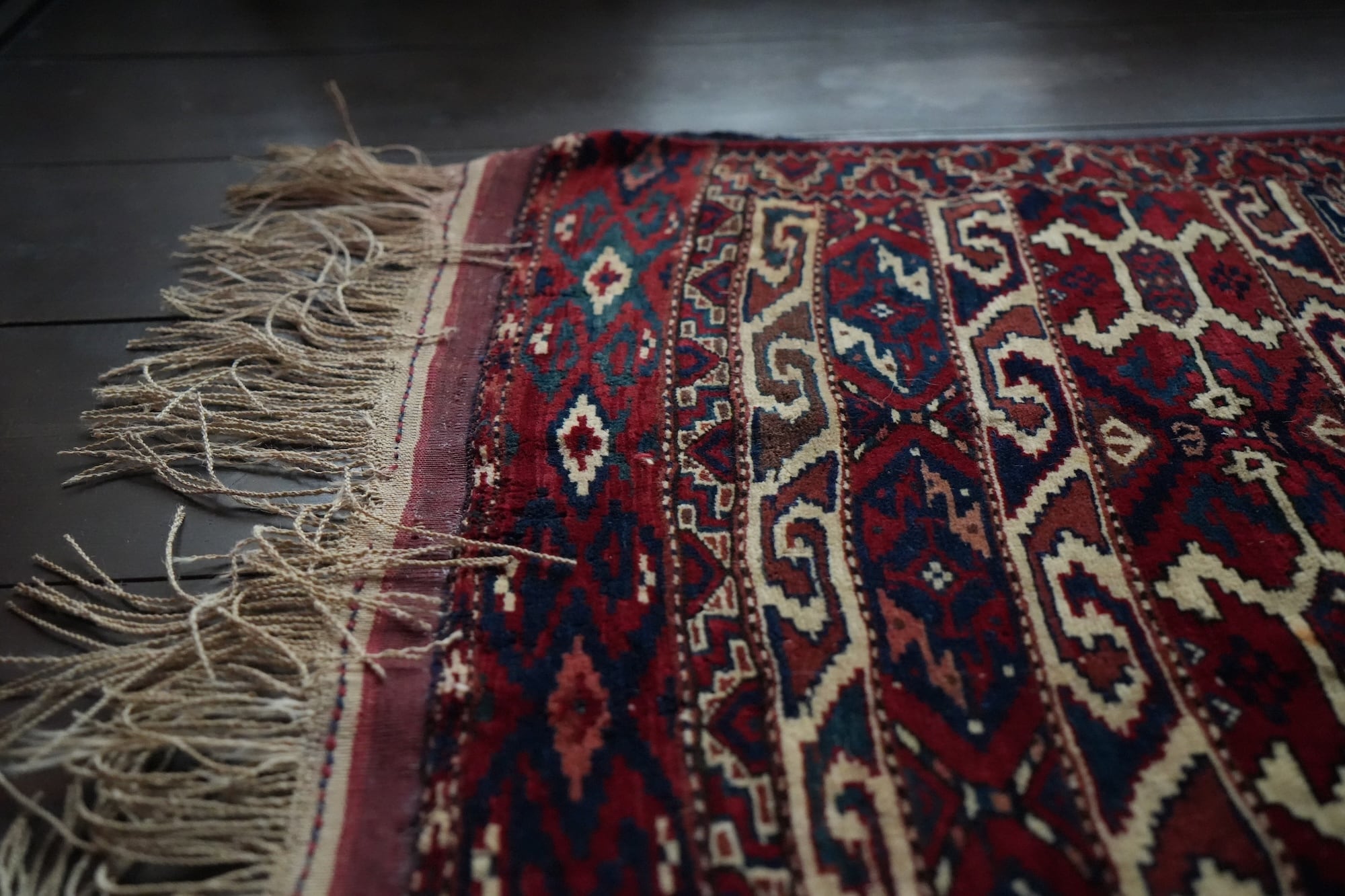長い時を経て、大切に受け継がれたラグのため、経年による