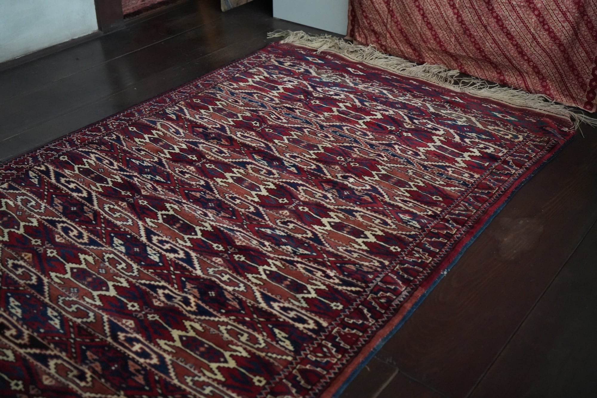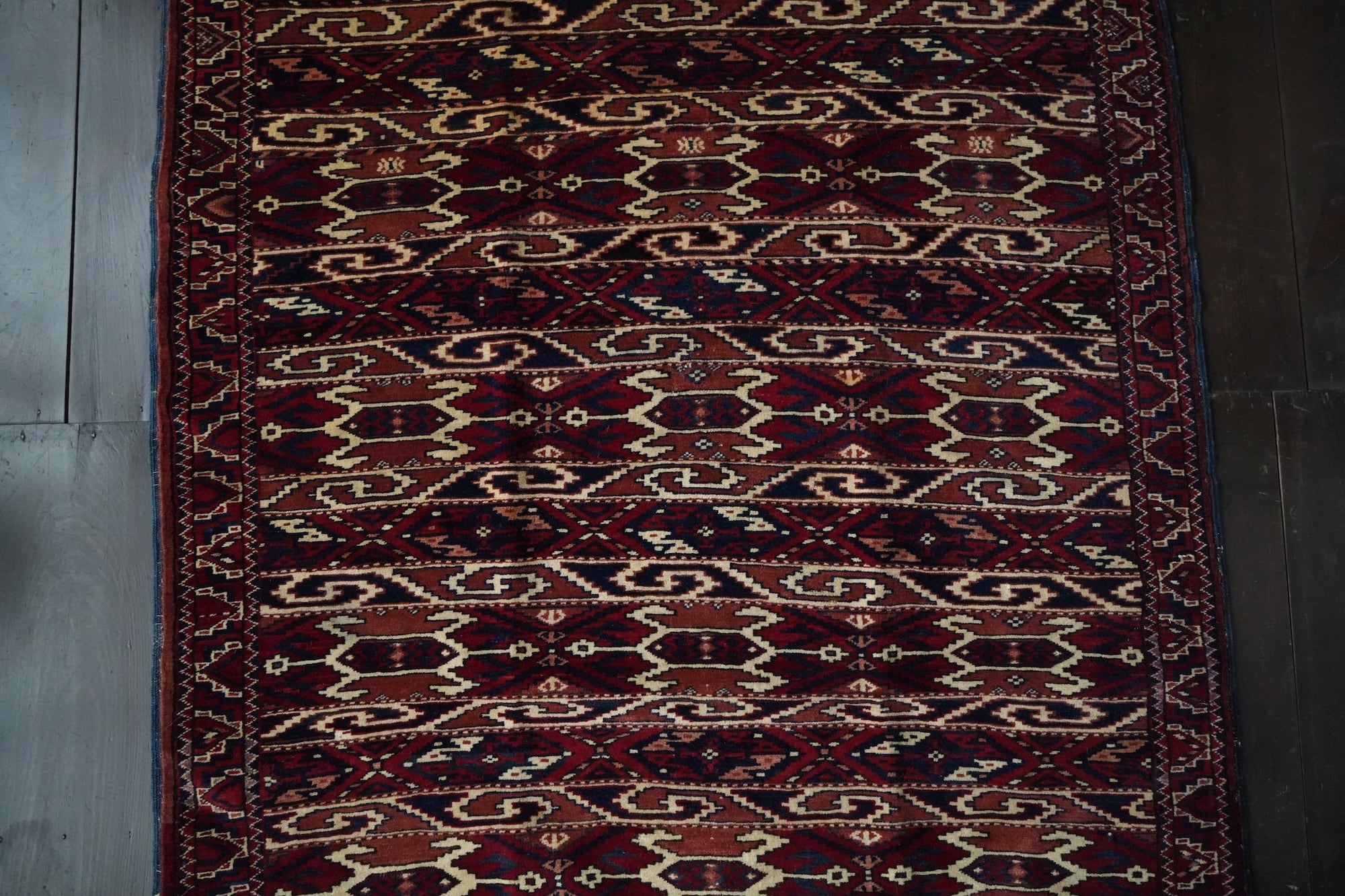 【AA199】カスピ海の広大な丘陵地帯の美しきラグ|アンティークトルクメン