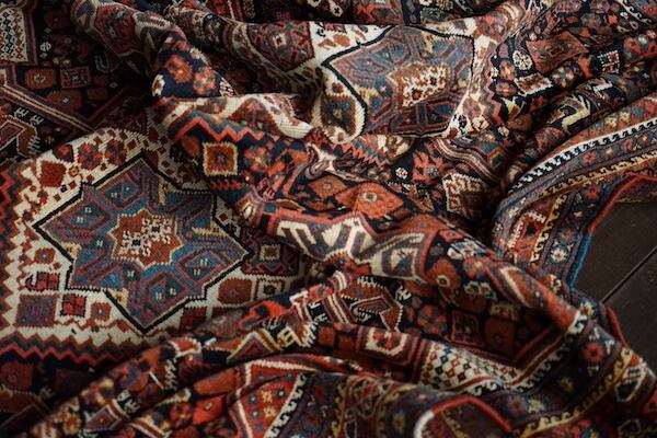 長い時を経て、大切に受け継がれたラグのため、経年による