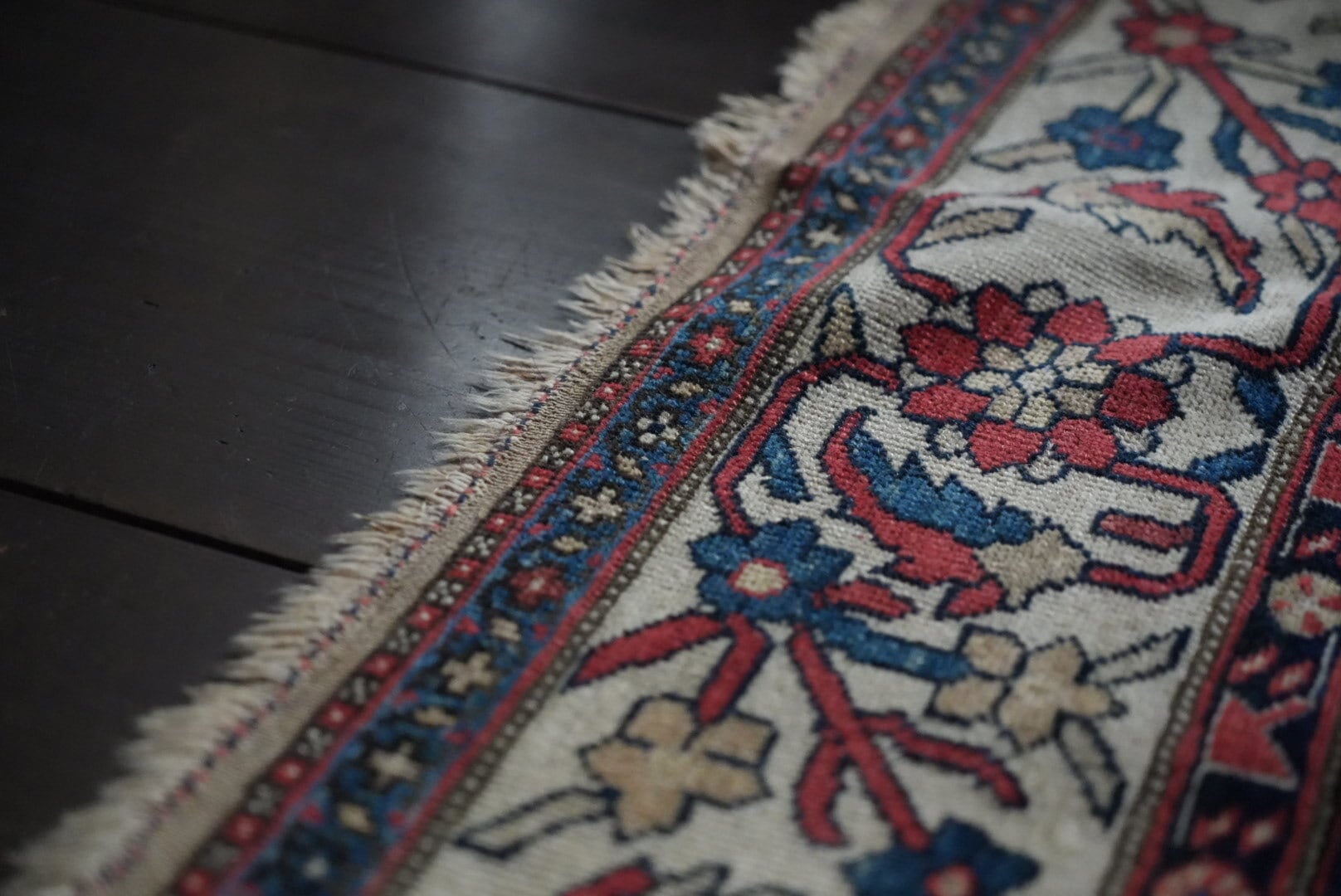 長い時を経て、大切に受け継がれたラグのため、経年による