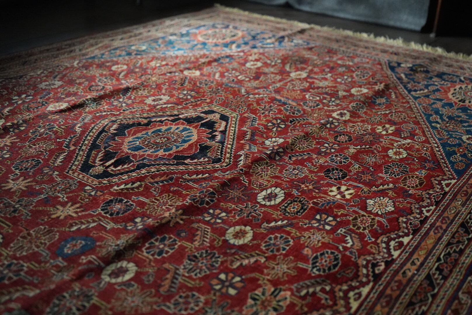 長い時を経て、大切に受け継がれたラグのため、経年による