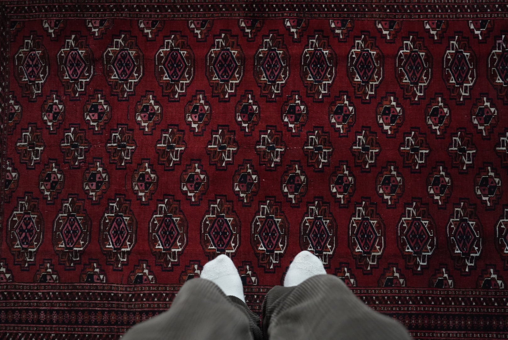 長い時を経て、大切に受け継がれたラグのため、経年による