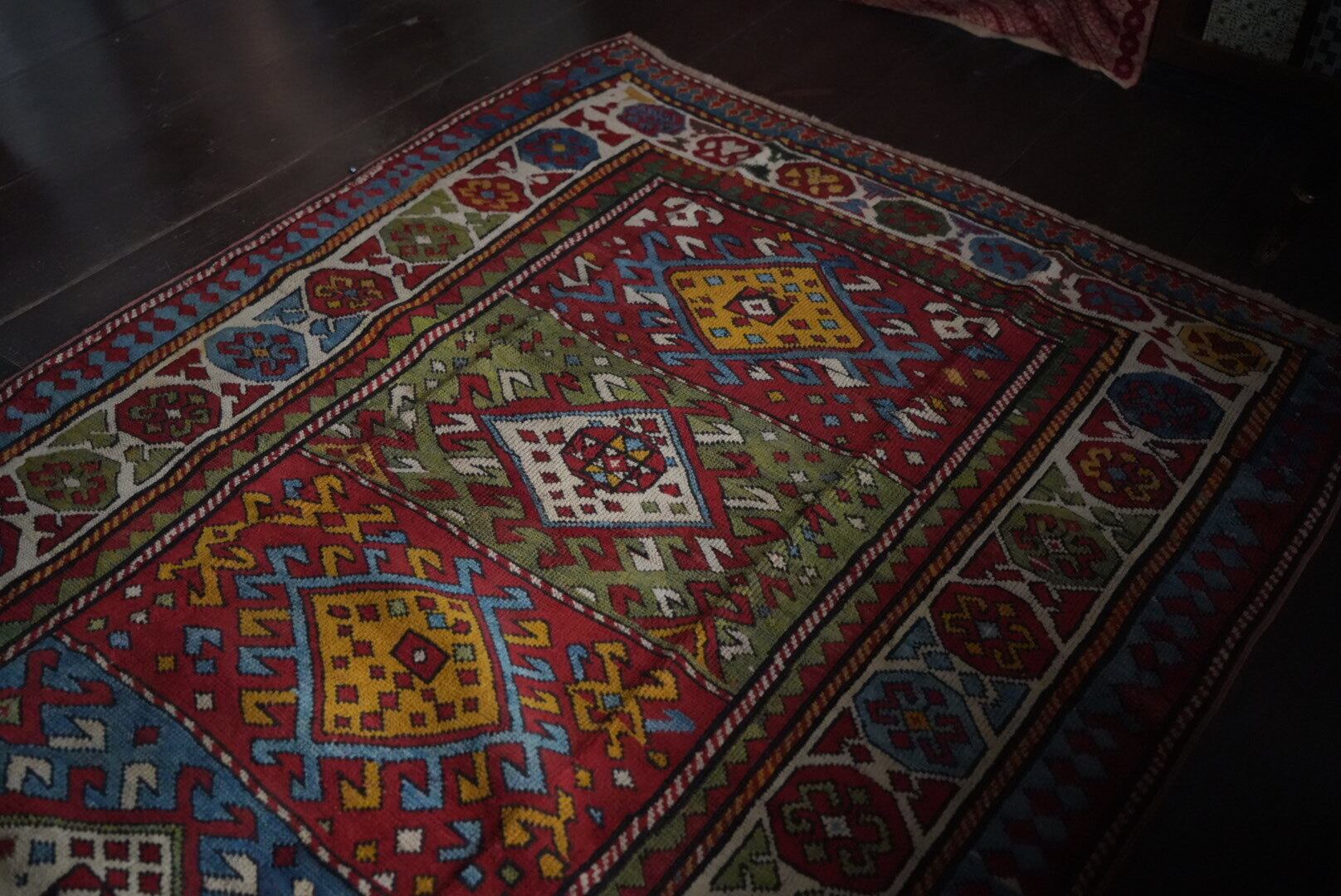 長い時を経て、大切に受け継がれたラグのため、経年による