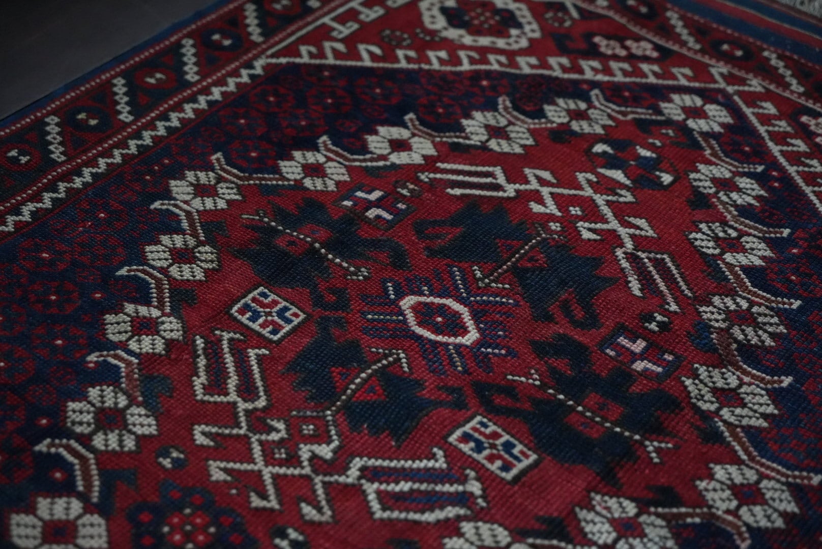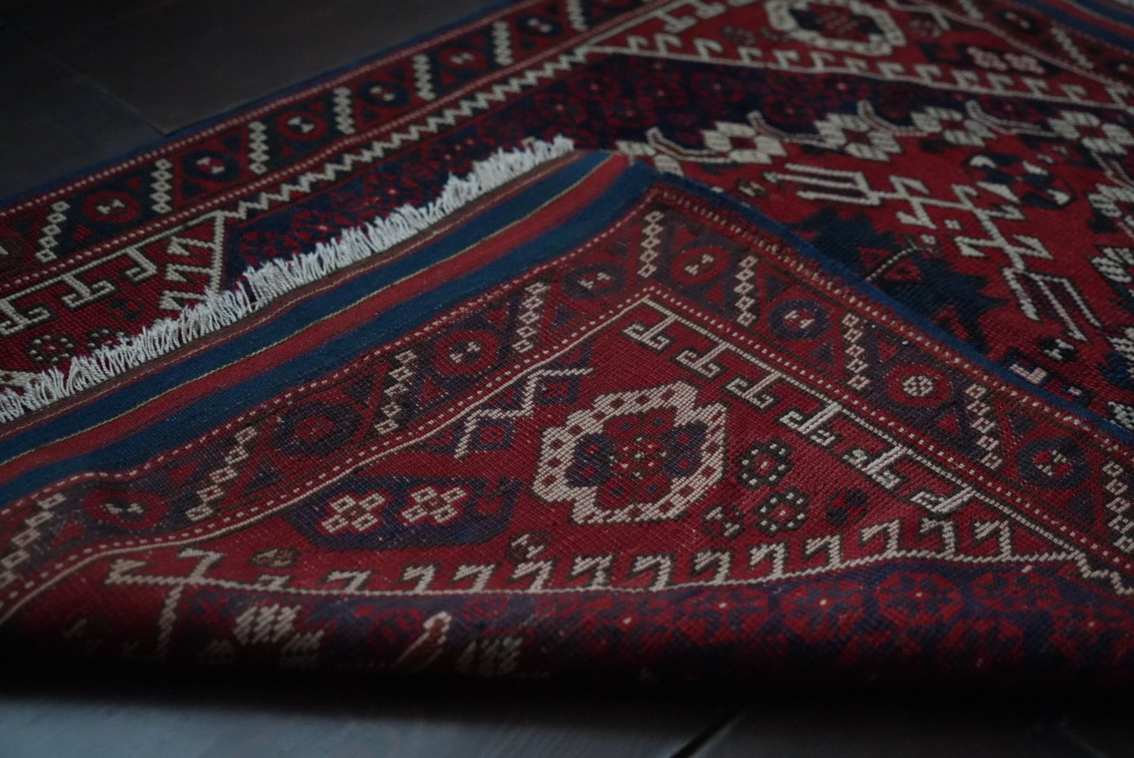 長い時を経て、大切に受け継がれたラグのため、経年による