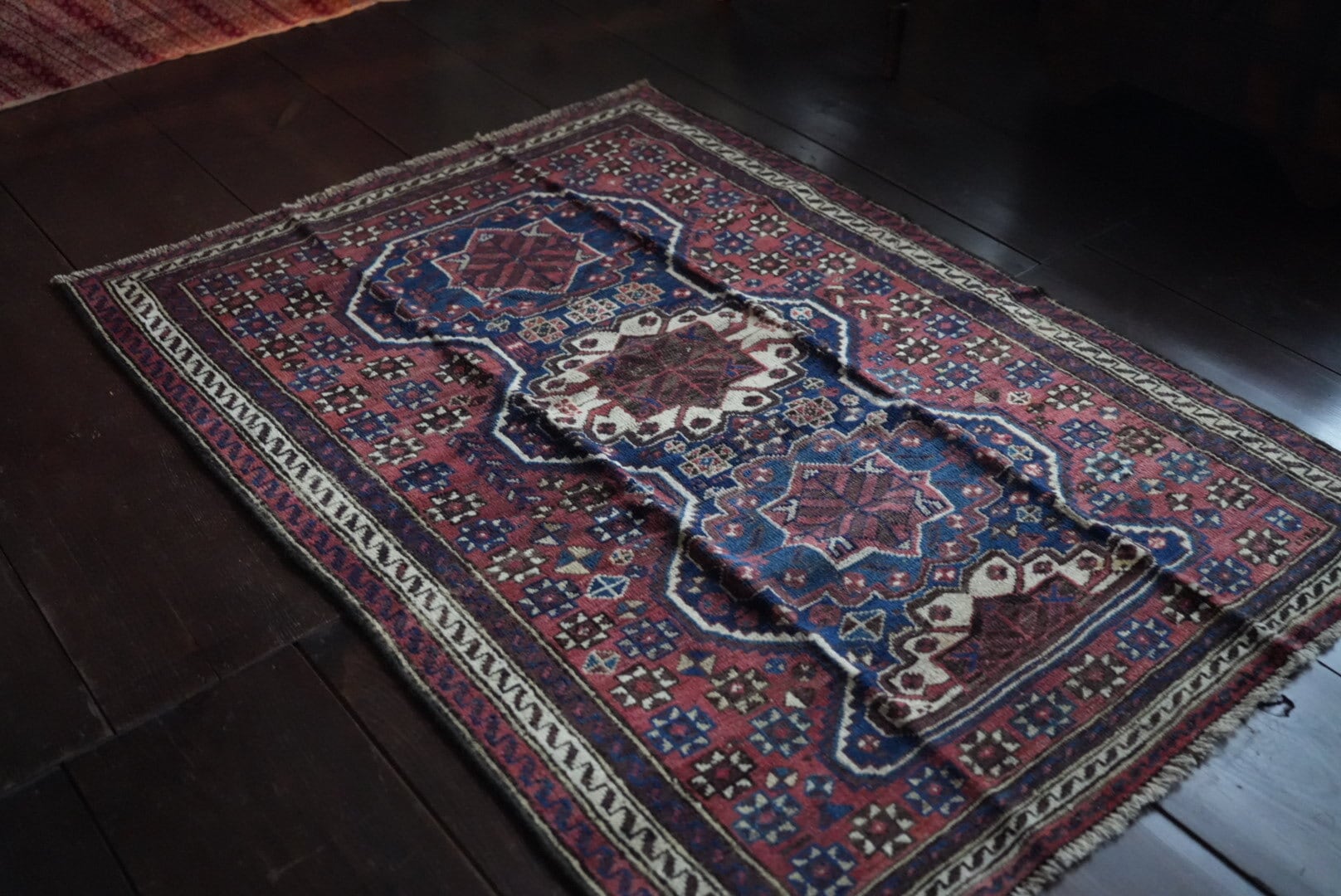 【PSU56】珍しき配色、プリミティヴなラグ|アンティークカシュガイ