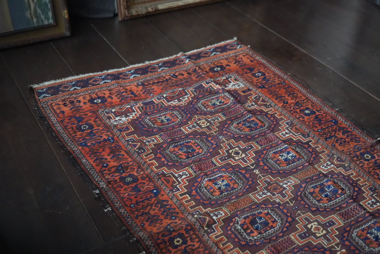 【AA143】赤褐色と濃紺の配色が美しきアンティーク|アフガンバルーチ